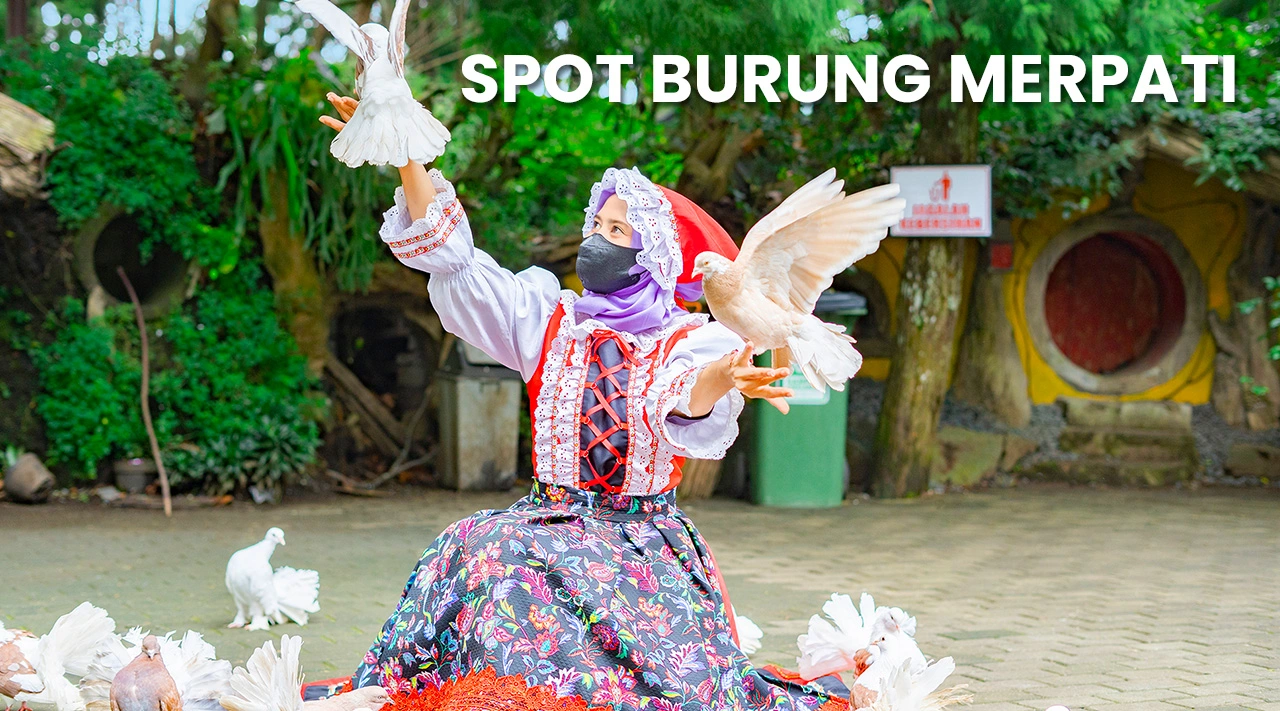 Di area depan bangunan Eropa Farmhouse Lembang ini, ada banyak burung merpati putih yang hidup bebas. Walaupun demikian, kamu masih bisa memberi makan burung-burung tersebut secara langsung. Makanan mereka adalah jagung yang harus dibeli dulu di petugas yang ada di area ini.