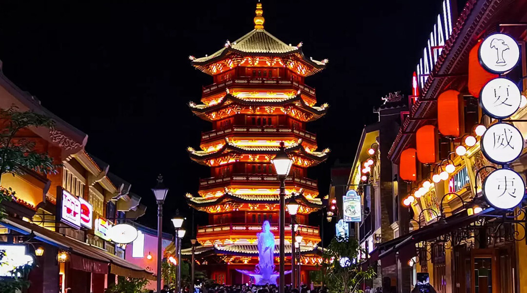 Kompleks taman ini dilengkapi perkampungan kecil Tionghoa (Pecinan), juga lengkap dengan segala pernak-pernik ‘kampong pecinan’ yang menghiasinya. Warna dominan merah dan kuning emas terlihat hampir di semua kwasan, serta bangunan-bangunan berbentuk simetris.