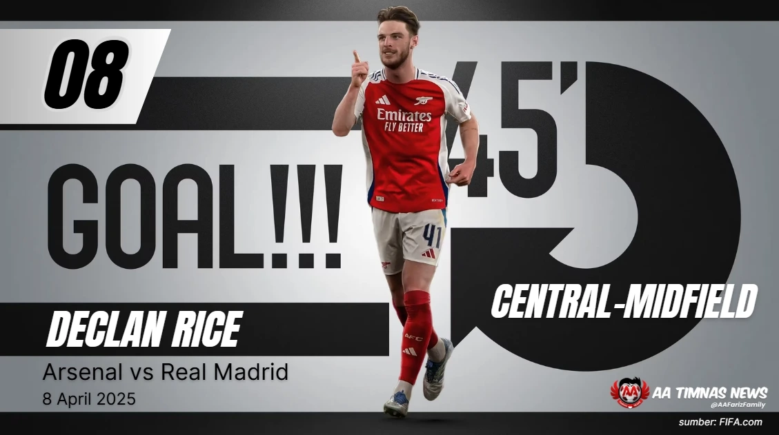 Tendangan bebas Rice dari jarak jauh yang mengarah ke pojok atas gawang membuat kiper Madrid tak berkutik. Gol ini juga membawa Arsenal menang telak 3–0.