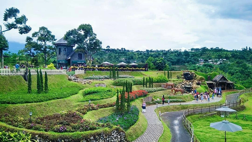 Mungkin Bestie sudah lebih dulu mengenal The Ranch Lembang yang terletak di perbukitan dengan suasananya yang sangat sejuk dan alami. Namun, bisa dikatakan bahwa The Ranch Cisarua Puncak ini lebih lengkap daripada The Ranch Lembang. The Ranch Cisarua Puncak ini menawarkan destinasi wisata bertema peternakan. Di sana ada banyak bangunan yang bergaya Belanda, klasik dan megah. Berbagai wahana yang bisa Bestie nikmati di sana adalah naik kuda berkeliling, memanah, Rumah Kelinci, melihat hewan ternak, dan Taman Bunga Cantik.