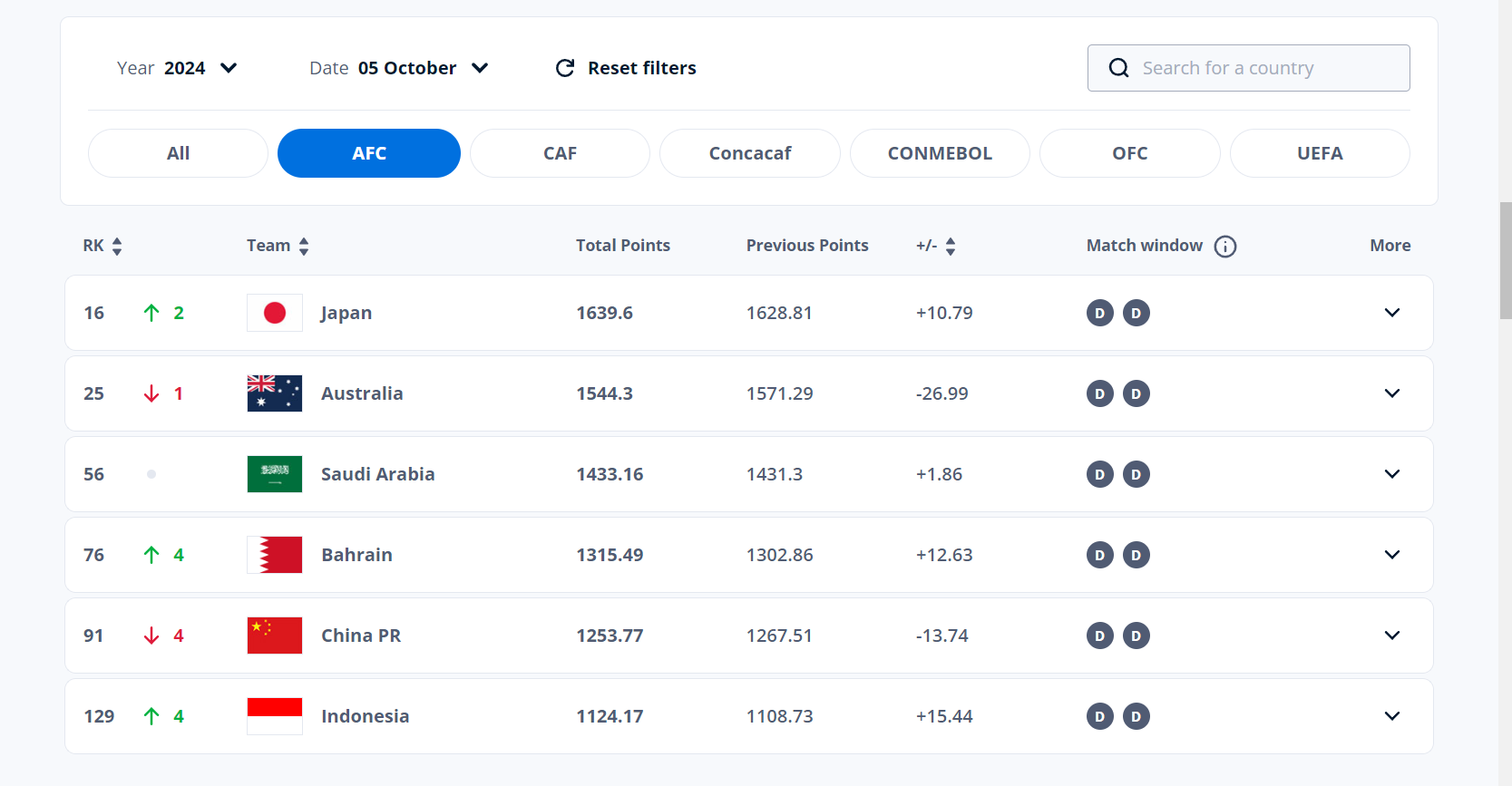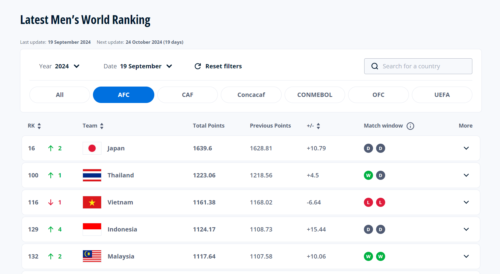 Ranking FIFA Timnas Indonesia dan Klasemen Group C