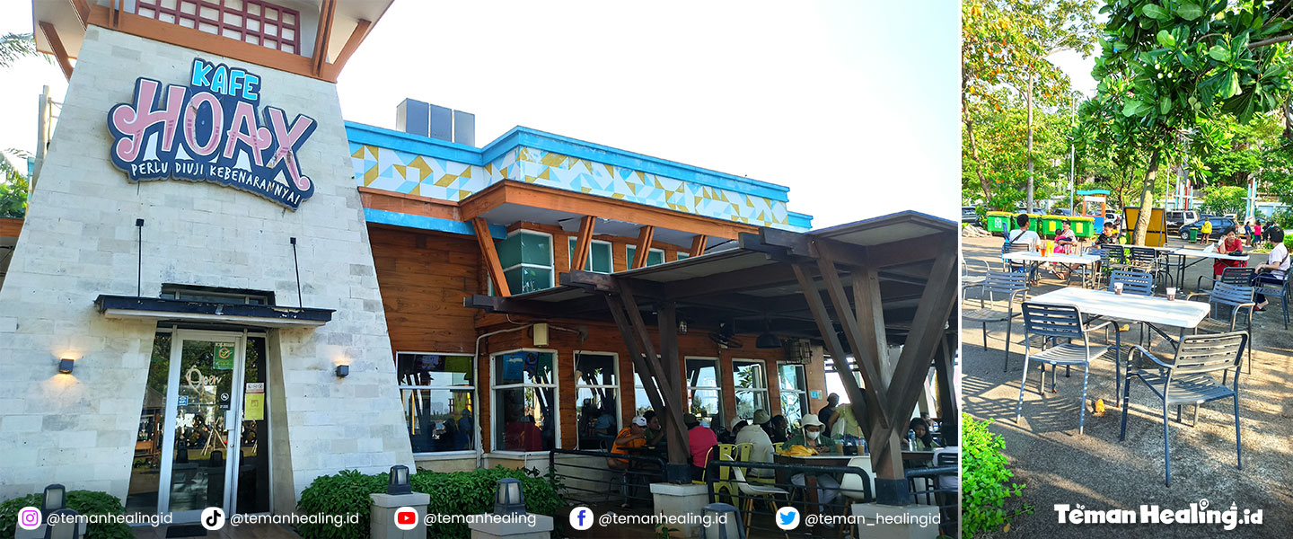 Namanya memang “ Hoax ”, tapi cafe & resto ini benaran ada loh ya Bestie. Lokasinya berada di pinggir pantai Lagoon Ancol. Jadi kamu gak perlu khawatir bukber kamu cuma tipu-tipu. Hehe.