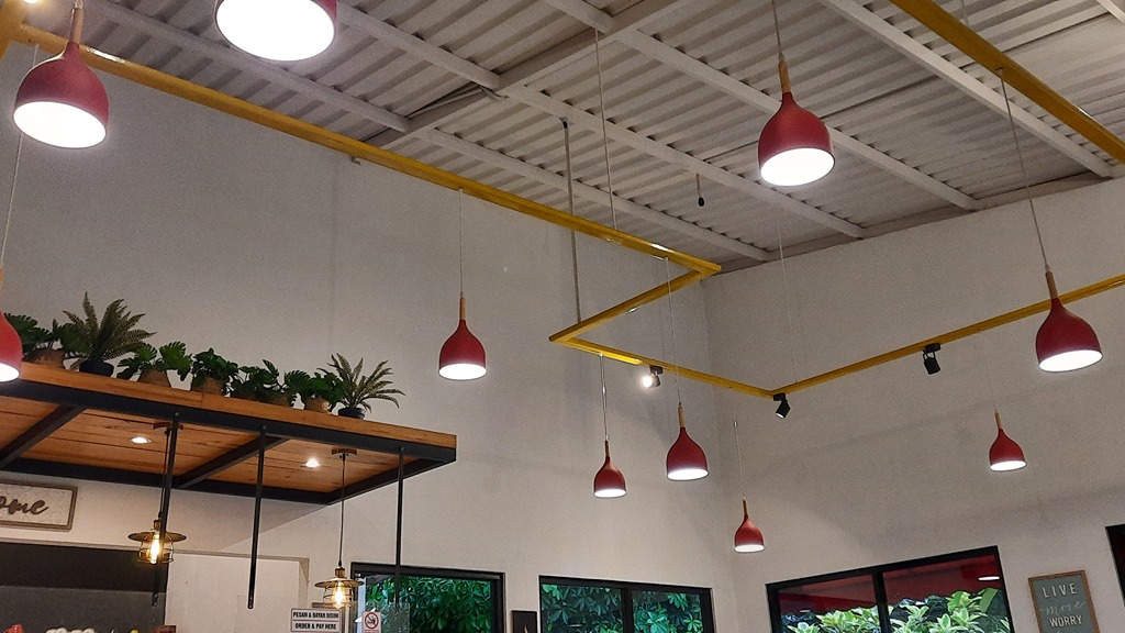 Selain itu, Kopi Magma juga merupakan tempat yang pas untuk pertemuan harian, work from cafe, atau bahkan mengerjakan tugas kuliah. Mereka menyediakan koneksi Wi-Fi yang sangat cepat. Suasananya semakin terasa homey karena lampu hias gantung dengan kap berwarna merah dan bohlam opal di dalamnya.